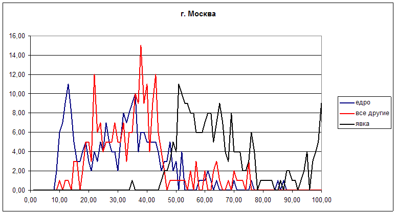 Вчера после анализа результатов по Новосибу показалось что все чинно и благродно (в меру). Хотел сегодня проанализировать какую-нибудь республику, но почитав днем инет, понял что надо смотреть мск. И факты налицо, как говорится, и народ свою точку зрения в реальных делах отстаивает.
