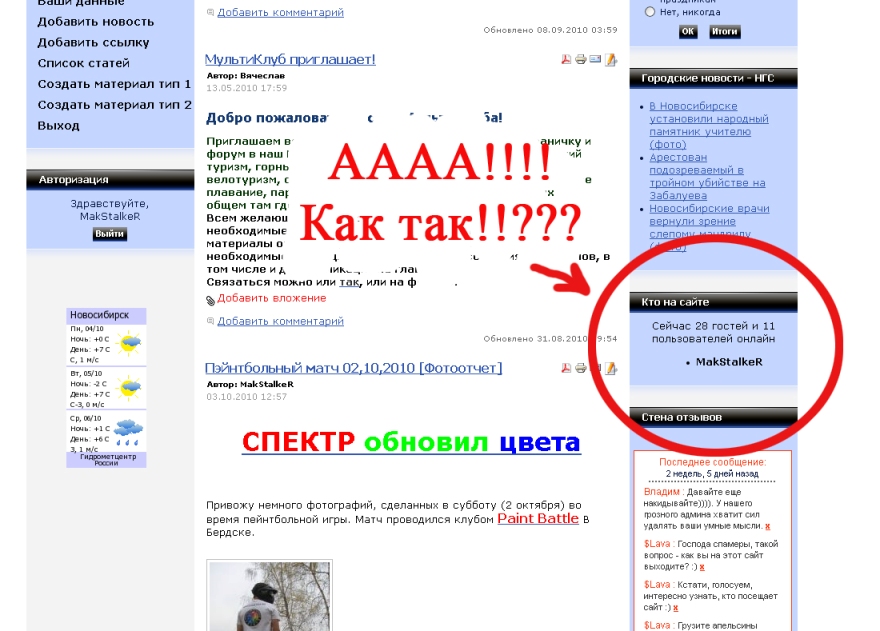 и второй вопрос: у вас с главной пропала надпись о "др МК СПЕКТР"? Если захожу гостем - её нету, если захожу под собой - она есть.... что на за нафиг?