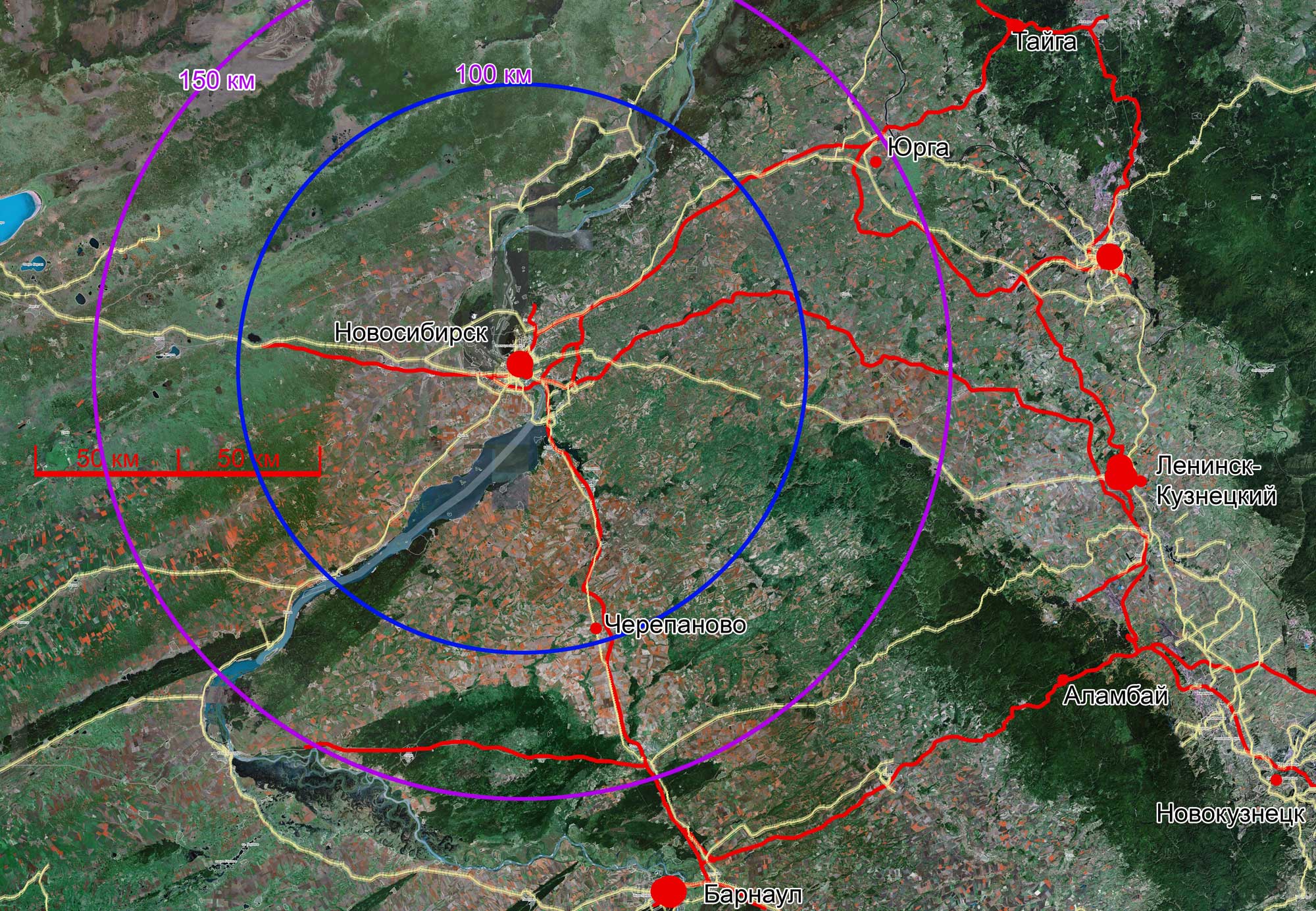 Желтым - автодороги. Красным - жд. Все это примерное. Так что ориентируйтесь просто в целом, но точнее - уже конкретно по участкам надо работать.