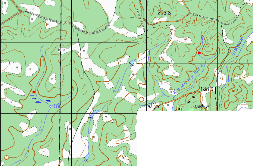 русло ручья, напротив северо-восточного мыса.