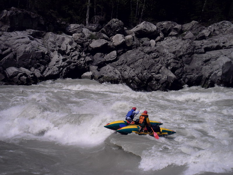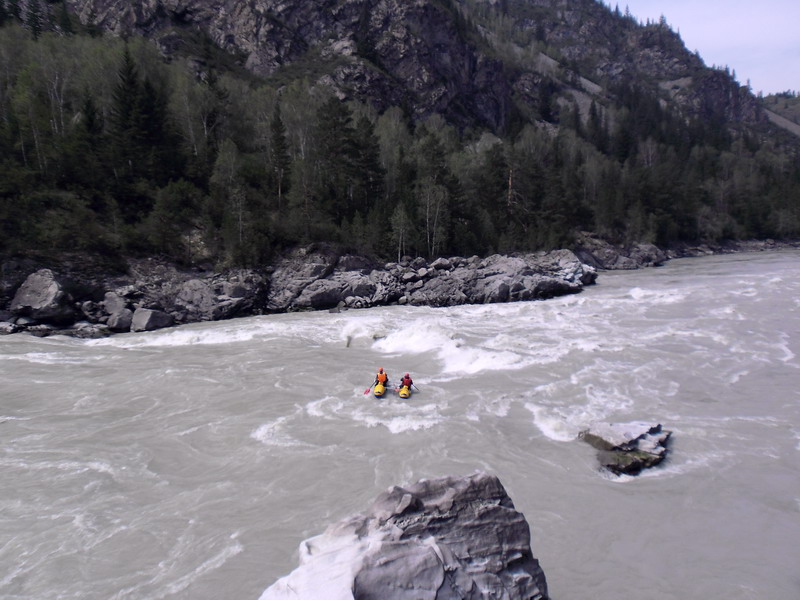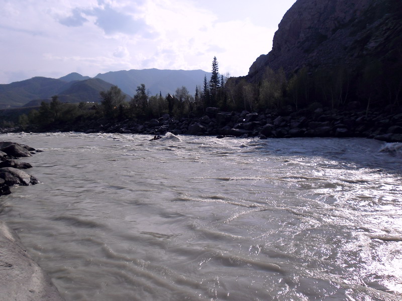 Вот и сходил я по средней Катуни (Яломан-Еланда). Вода была ниже чем 2 недели назад метра на 2, это видно по береговому плавнику. Ледники стаяли и "кончились", теперь нужно разводить шамана на осадки для нормального уровня. Но даже по такому низкому уровню, было весело и интересно. В сравнении с Чуей, Катунь речка богатая валами, реже бочками, но есть на ней порог ильгумень и шабаш, которые не оставляют равнодушными никого).