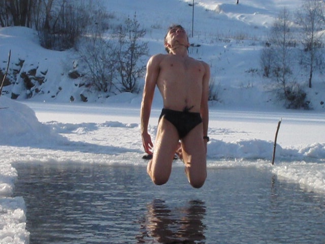 на половине фоток с прыжками проруби не видно.. весь смысл снимка пропадает. )