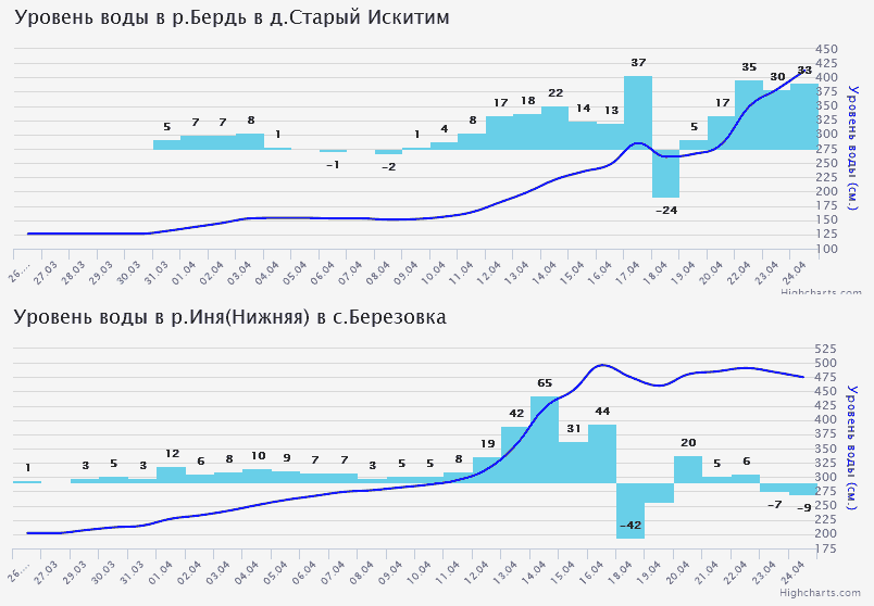 Для анализа будующих лет уровень воды на 4-5 апреля в ближайших реках: Погода в городе - солнечно, +5 С. За городом (Черепаново) - +1 С.